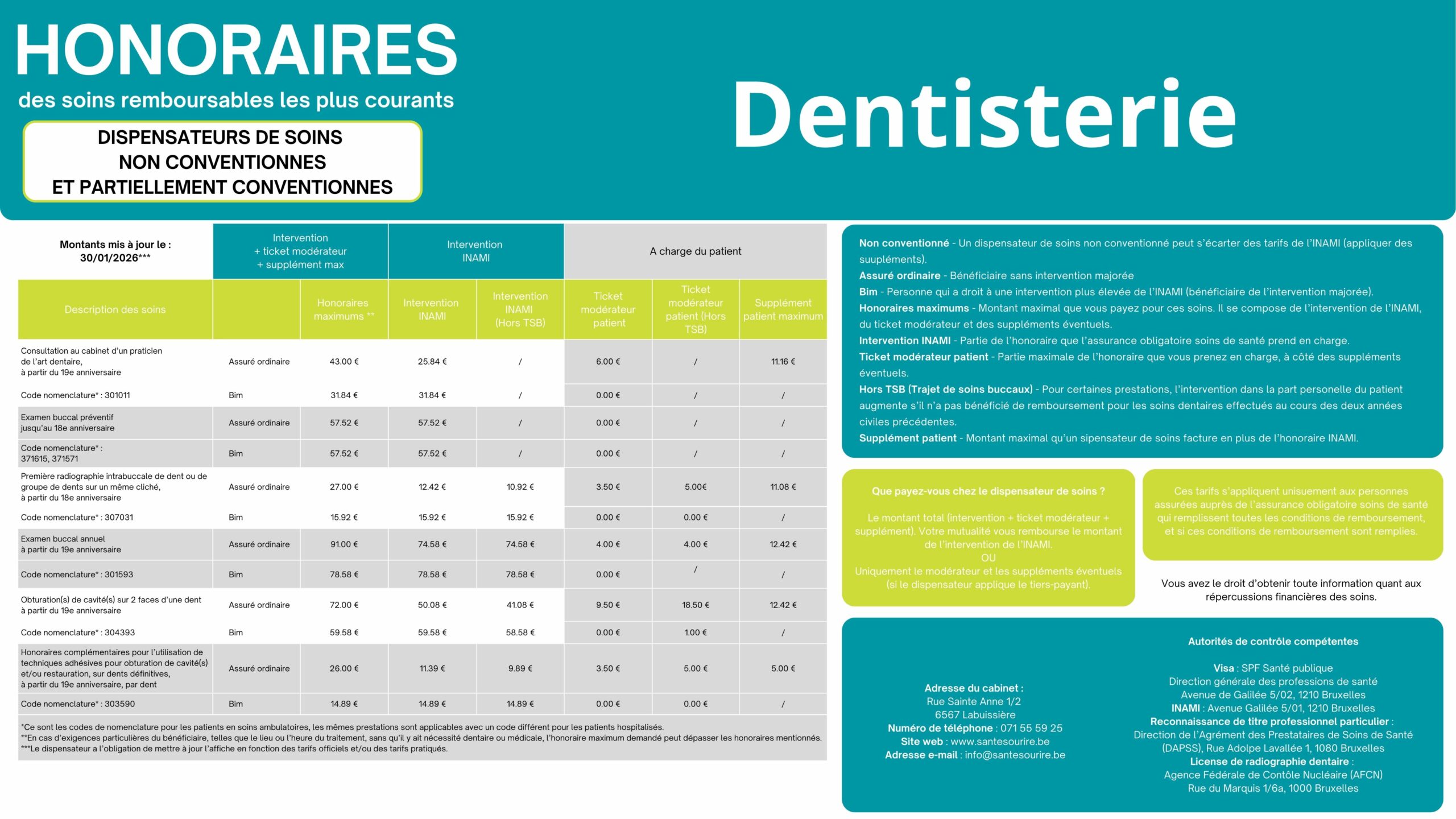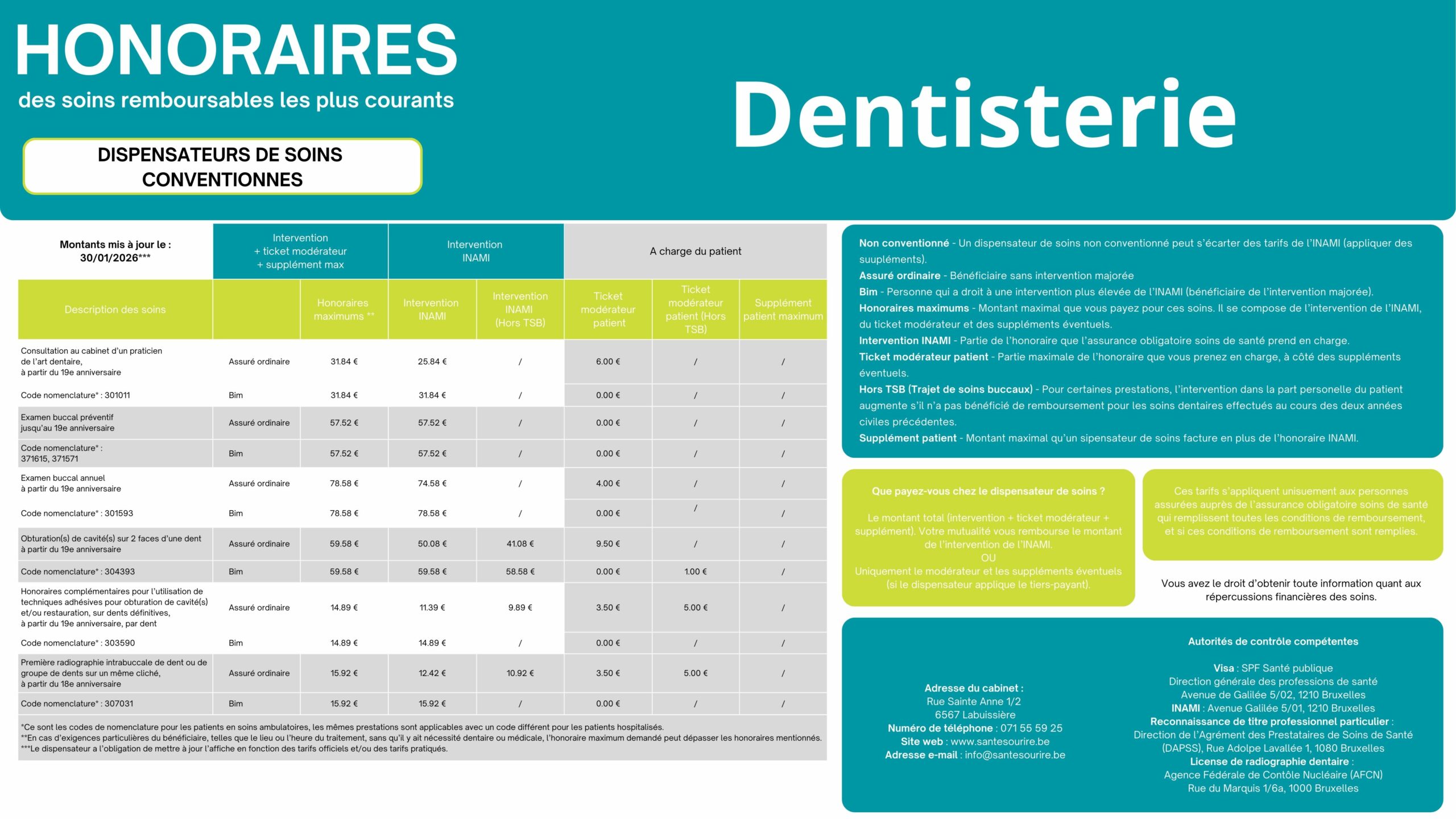 Pour connaitre le statut de convention de votre dentiste, rendez-vous sur la page Equipe.